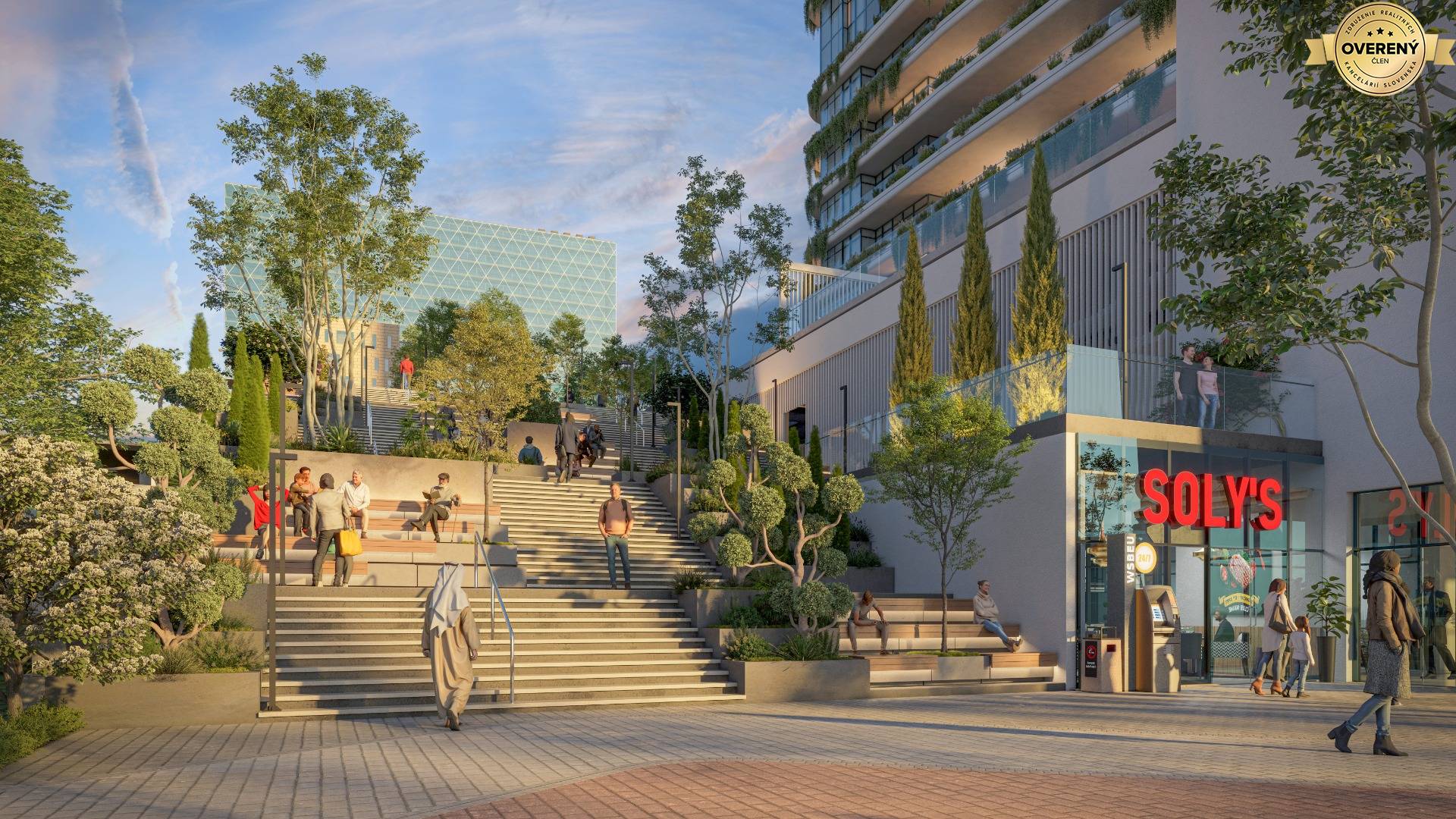 Jeho moderný udržateľný dizajn fasády vytvára jedinečný neprekonateľný vzhľad v strede