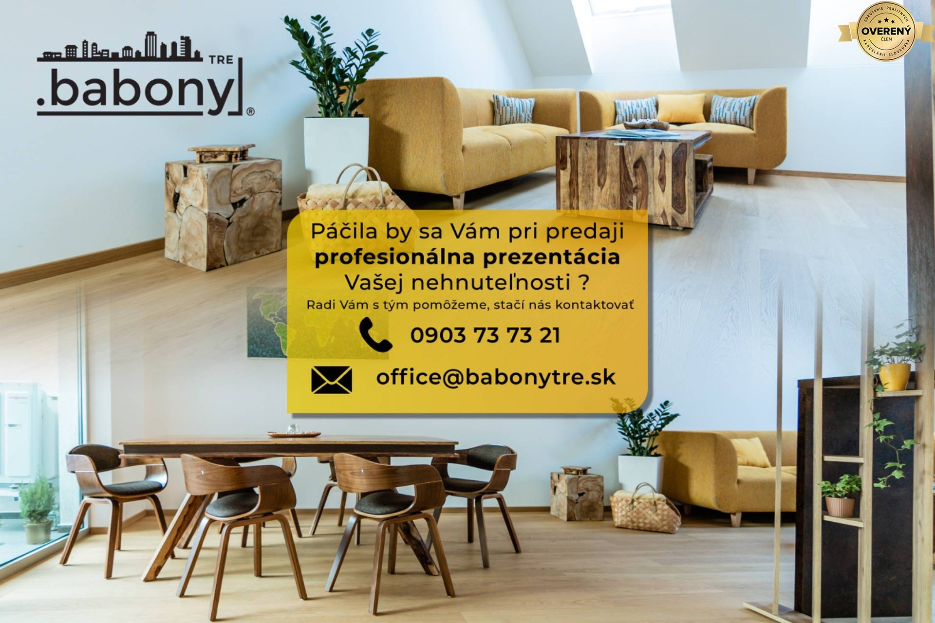 Babony TRE & PARTNERS tvorí kolektív starostlivo vybraných odborníkov na trhu s nehnuteľnosťami. Naša hlavná sila spočíva v hlbokom vzdelaní a vedomostiach v oblasti práva, obchodu a marketingu, kombinovaných s bohatými skúsenosťami v realitnom biznise. Vzhľadom na neustále sa meniaci a rozvíjajúci trh s nehnuteľnosťami, neustále sledujeme najnovšie trendy a snažíme sa získať najaktuálnejšie poznatky prostredníctvom rôznych vzdelávacích kanálov a programov.